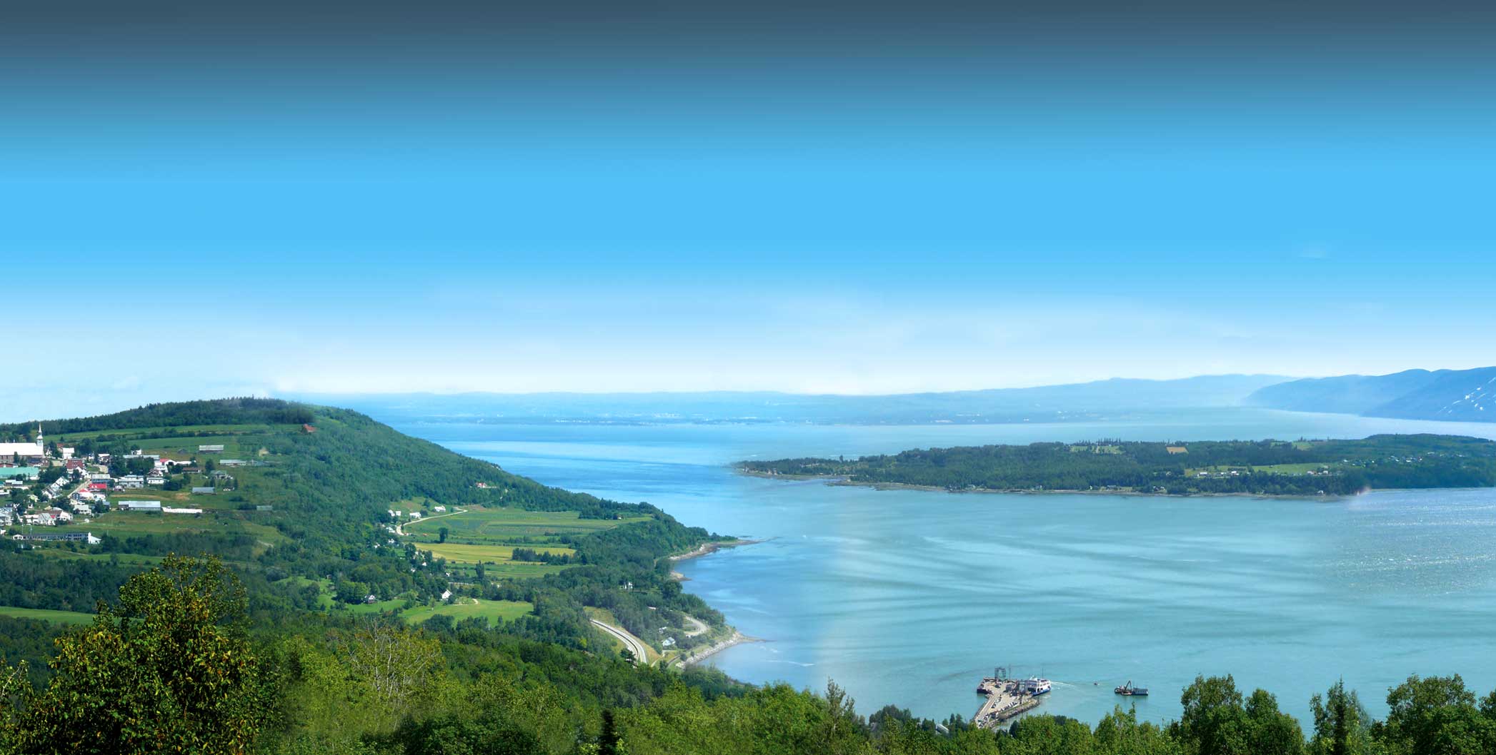 La plus belle vue de Charlevoix… balayant d'est en ouest le village des Éboulements, en passant par l'Isle-aux-Coudres, jusqu'au Massif de Charlevoix.